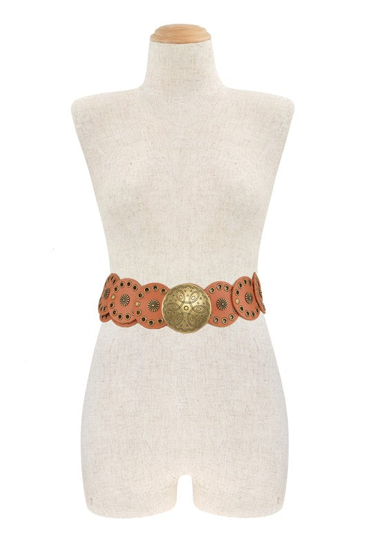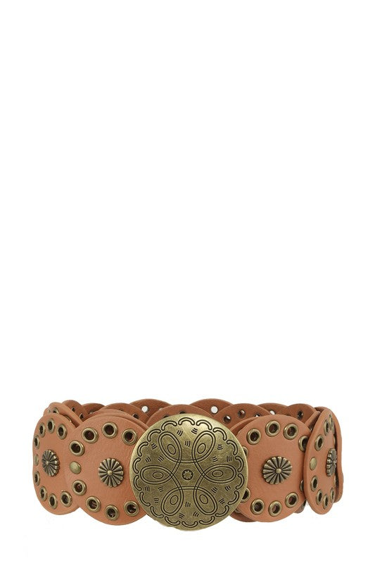 Studded Disc Faux Leather Belt